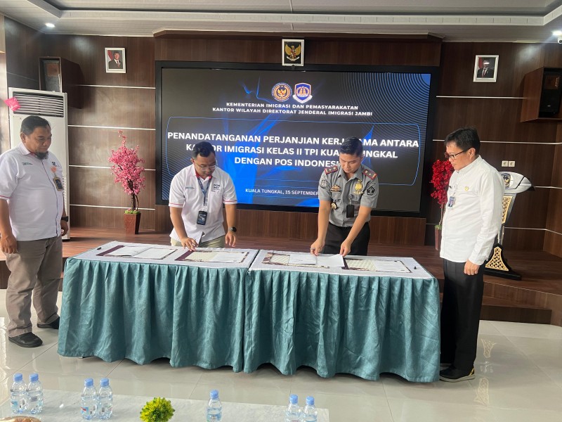 Imigrasi Kuala Tungkal dan PT Pos Indonesia Tandatangani Kerja Sama Strategis