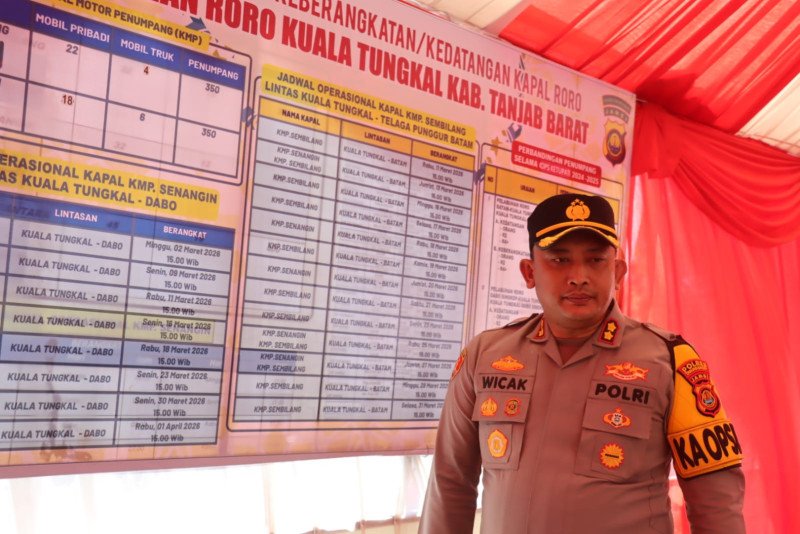 Kapolres Tanjab Barat Pastikan Pelayanan dan Kesiapan Pos Terpadu Pelabuhan Roro Lebaran 2026