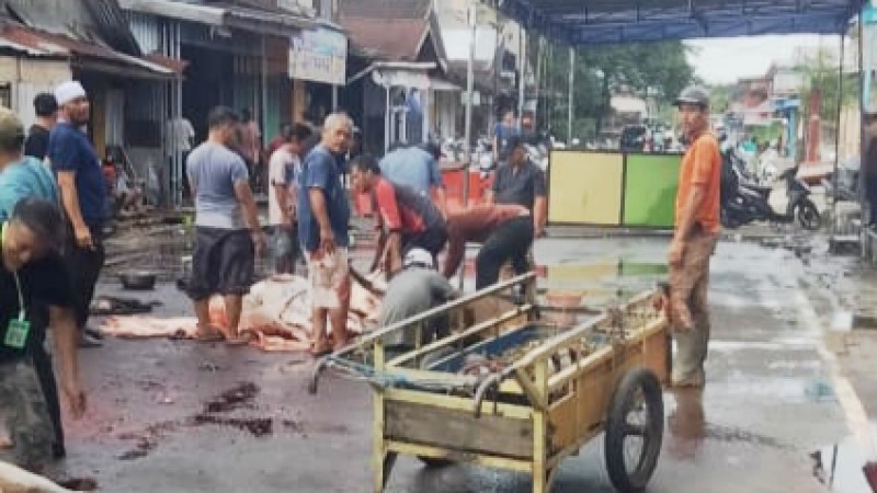 Mesjid sepakat melaksanakan kegiatan rutin tiap tahun nya dengan menyembelih hewan qurban berupa hewan ternak (Sapi mau pun kambing) di halaman masjid setempat.(07/05/2025)"