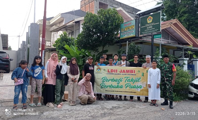 JAMBISIGAPNEWS | JAMBI – Pengurus Anak Cabang (PAC) LDII Kelurahan Tambaksari bersama Bhabinkamtibmas dan Babinsa menggelar kegiatan berbagi takjil gratis kepada masyarakat di Lorong Pahlawan, Kelurahan Tambaksari, Kecamatan Jambi Selatan, Kota Jambi, pada Minggu (15/3/2026).